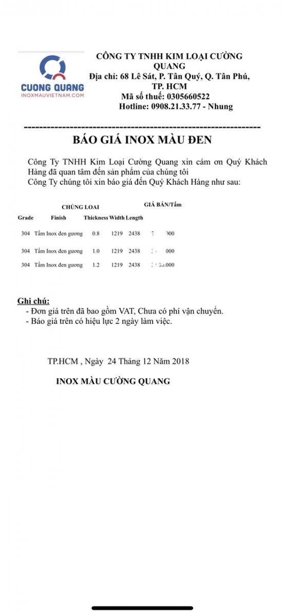 Hãy liên hệ với công ty Cường Quang qua số điện thoại Hotline: 0776.304.316; 0766.201.304 hoặc đến trực tiếp địa chỉ: 68 Lê Sát, Phường Tân Quý, Quận Tân Phú, TP.HCM nếu bạn có nhu cầu sử dụng nhưng còn băn khoăn không biết mua inox ở đâu đảm bảo chất lượng với giá rẻ. Đội ngũ nhân viên của chúng tôi luôn sẵn sàng để đáp ứng và phục vụ cho nhu cầu của bạn một cách nhanh chóng, mọi lúc mọi nơi. Xin cảm ơn!
